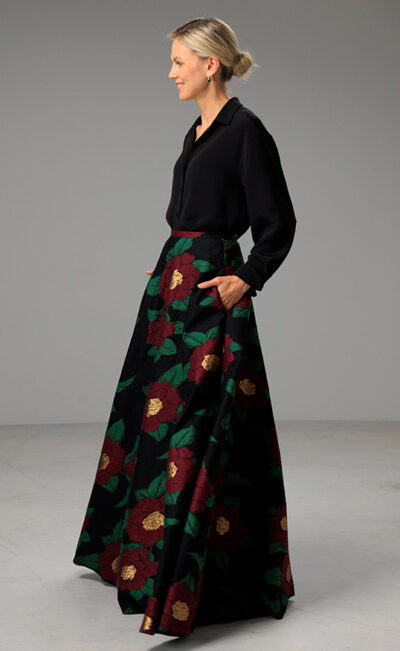 EXCLUSIVE WOOL COTTON MAXI SKIRT VIVIENNE FLOWERS
