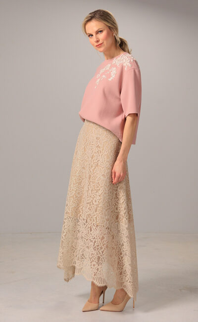 COTTON BLEND LACE SKIRT AMANDA BEIGE