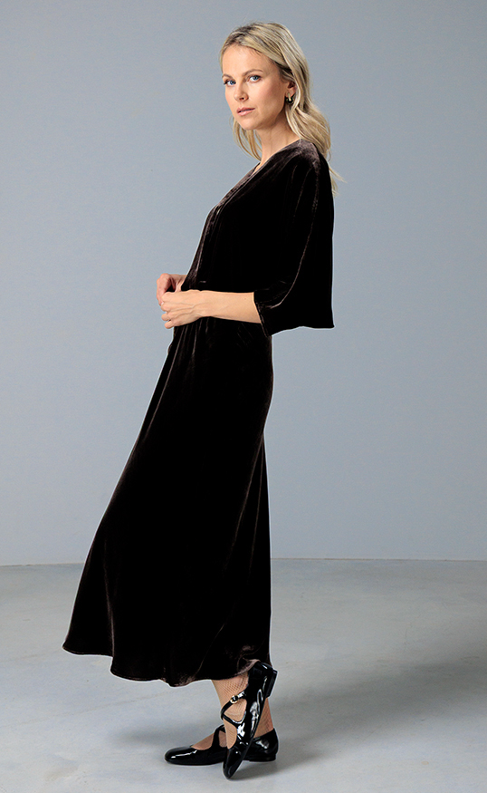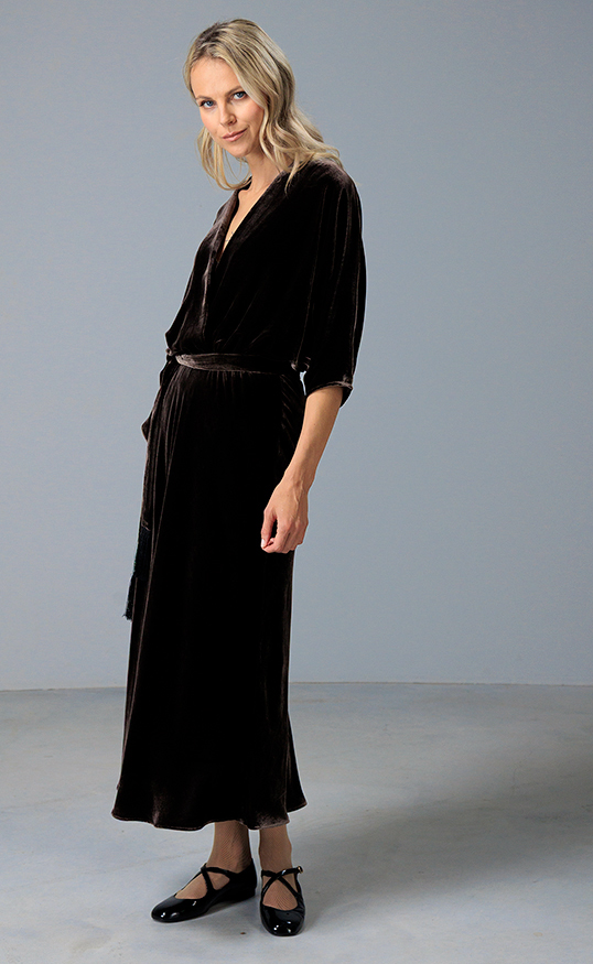 Velvet dress, designed to make a statement at every occasion. Featuring flowing kimono sleeves and a flattering elastic waist, this dress combines comfort with sophistication. The plush velvet fabric catches the light beautifully, adding depth and richness to your look. Whether you’re dressing up for an evening event or simply want to feel glamorous, this piece is your perfect go-to for timeless style with a modern twist.